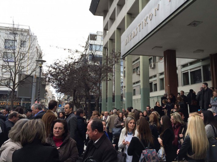 Η μεγάλη συμμετοχή και το αγωνιστικό πνεύμα των δικηγόρων και των λοιπών κλάδων νομικών και αυτοαπασχολούμενων αποτέλεσαν τα κύρια χαρακτηριστικά του σημερινού μαζικού συλλαλητηρίου όλων των επαγγελματικών φορέων κατά του κυβερνητικού προσχεδίου για το Ασφαλιστικό. Ήδη από την προσυγκέντρωση στο Δικαστικό Μέγαρο κατέστη σαφές ότι οι δικηγόροι δηλώνουν παρόντες σε αυτό τον αγώνα που αφορά την ίδια την επιβίωσή τους. Με οργανωμένη πορεία μέσω των οδών Κούμα – Ρούσβελτ το μπλοκ των νομικών που αριθμούσε πάνω από τριακόσια άτομα με τη συμμετοχή συμβολαιογράφων, δικαστικών επιμελητών κλπ μετακινήθηκε στην πλατεία Ταχυδρομείου όπου έδωσε τον παλμό στο συλλαλητήριο.