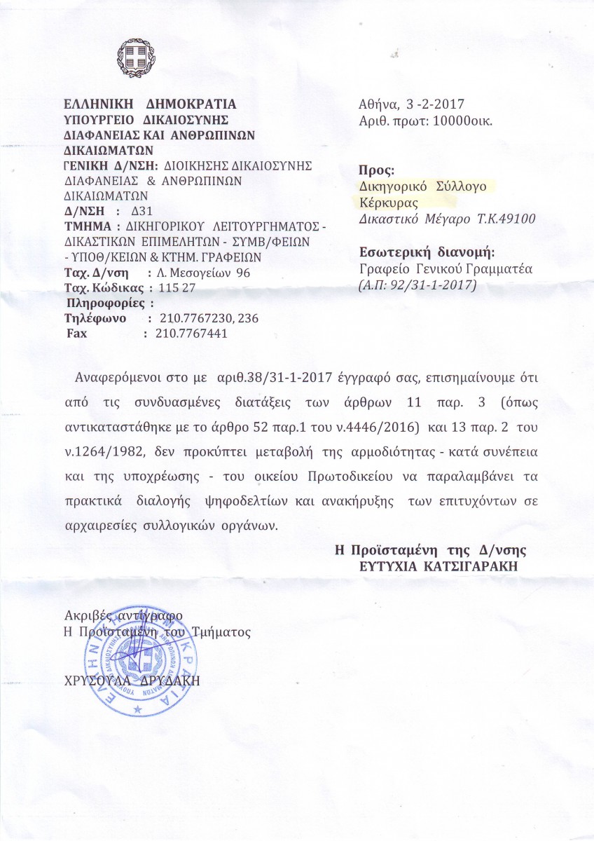 Αρχική Σελίδα / Νέα / Διάφορα / Αρμοδιότητα Πρωτοδικείου η παραλαβή πρακτικών αρχαιρεσιών σωματείων...
