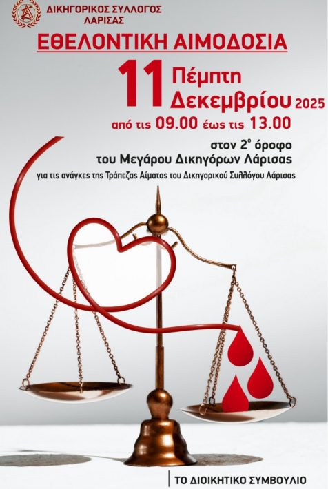Εθελοντική αιμοδοσία του Δ.Σ.Λ. την Πέμπτη 11 Δεκεμβρίου 2025 5 Δεκεμβρίου 2025/Newsletter, Ανακοινώσεις, Διοικητικό Συμβούλιο