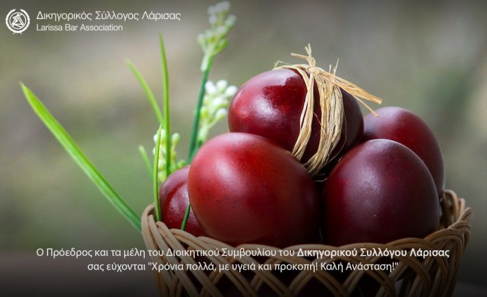 Ευχές του Διοικητικού Συμβουλίου του Δικηγορικού Συλλόγου Λάρισας 6 Απριλίου 2026/Newsletter, Ανακοινώσεις, Νέα O Πρόεδρος και τα μέλη του Διοικητικού Συμβουλίου του Δικηγορικού Συλλόγου Λάρισας, σας εύχονται «Χρόνια Πολλά, με υγεία και προκοπή! Καλή Ανάσταση!»